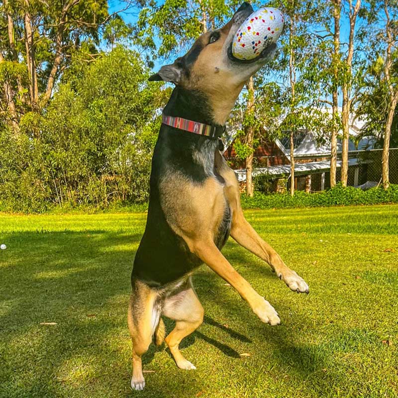 Double the size double the fun! The WonderFooty is pawfect for any backyard footy game its just as durable than our original WonderBall. It bounces, floats and is chewy!